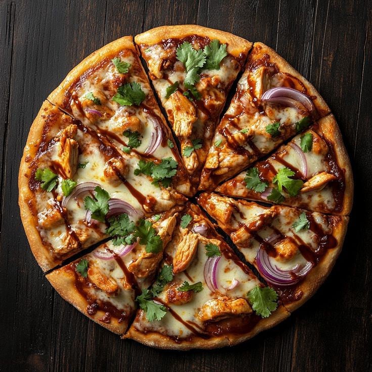 A pizza toped with tender, cheese and savory sauce.